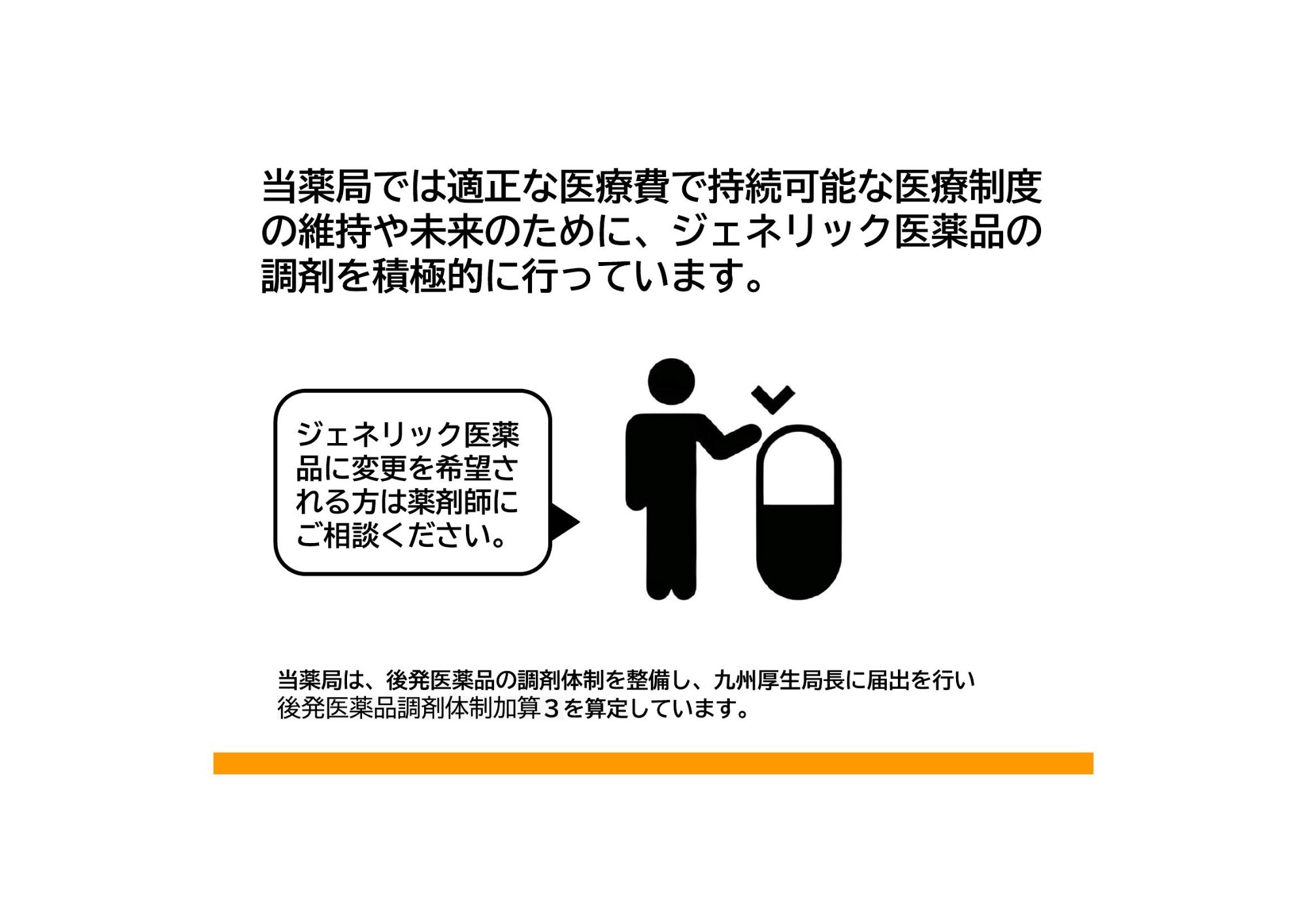 • 患者さんが長期収載品の処方等又は調剤を希望する場合は、特別の料金として、長期収載品と後発医薬品最高価格帯との差額の1/4を徴収します。