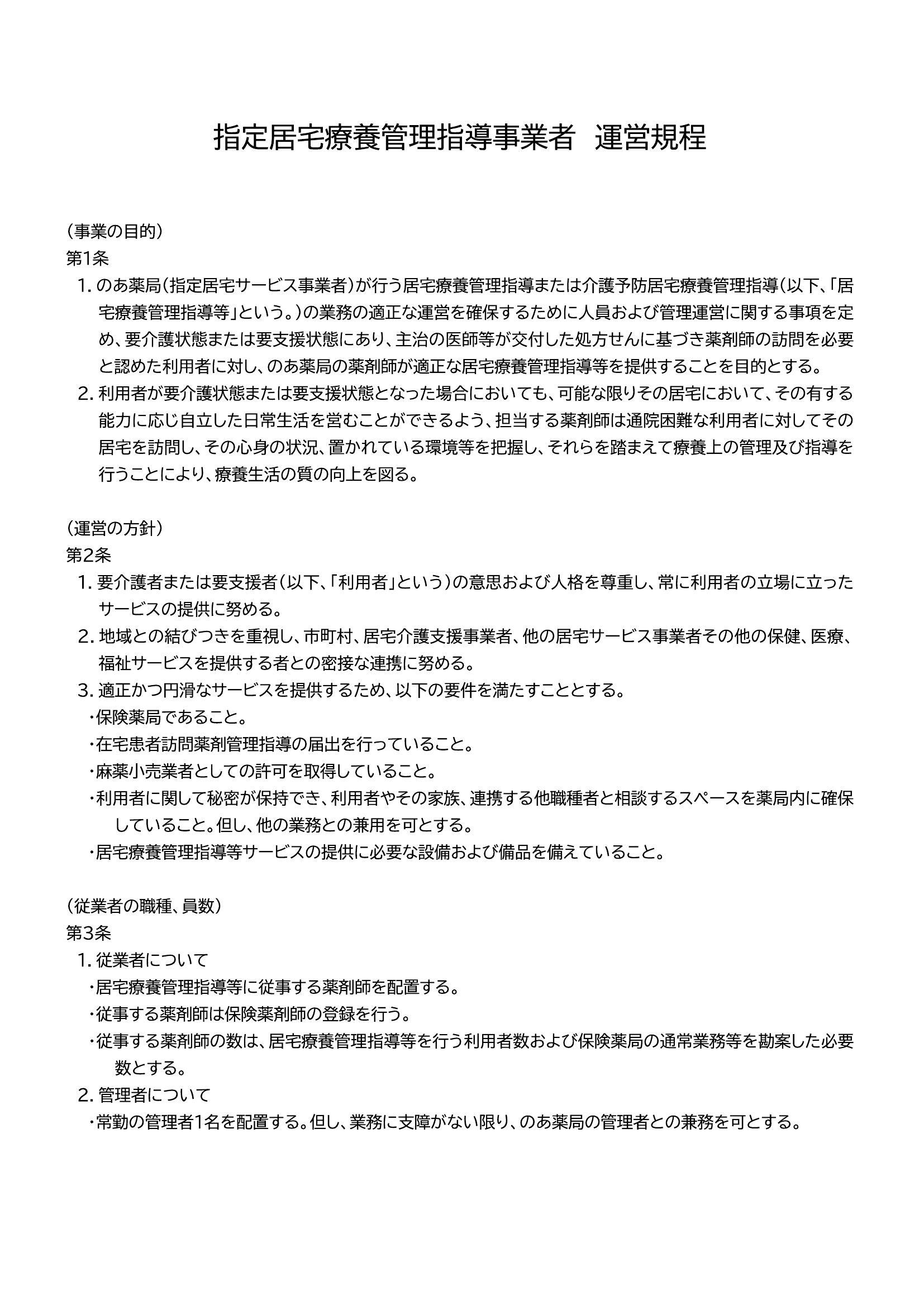 指定居宅療養管理指導事業者 運営規程