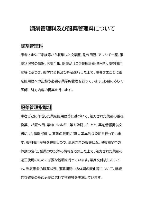 調剤管理料・服薬管理料について