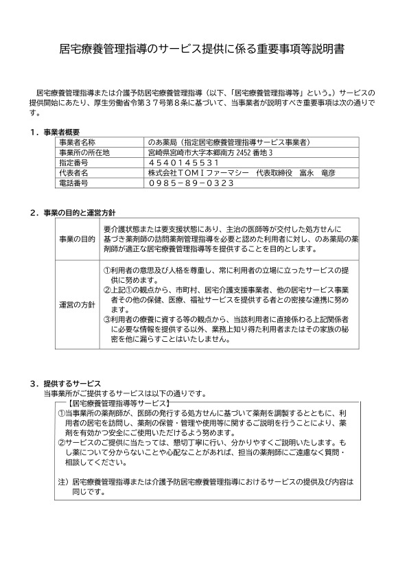 訪問薬剤管理指導の届出を行っている旨